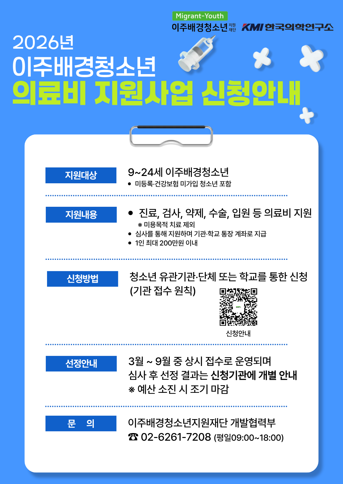 2026년 이주배경청소년 의료비지원사업 안내